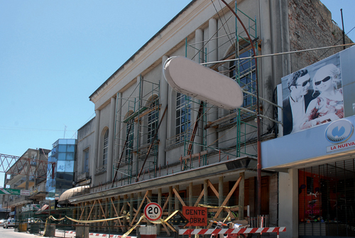 Fachada del Teatro Florencio Sánchez durante el proceso de restauración.