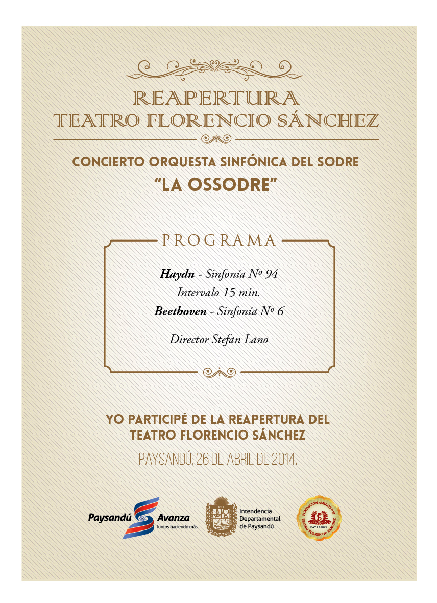 Con la presencia del ministro de Educación y Cultura Ricardo Ehrlich, se realizará el acto oficial de reapertura del Teatro Florencio Sánchez de la cuidad de Paysandú el sábado 26 de abril a partir de la hora 20.30.